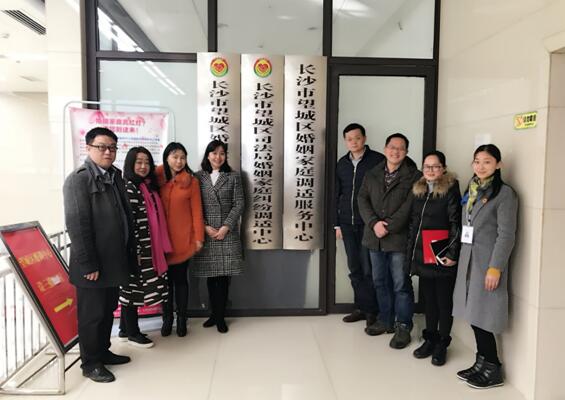 (供稿 陈云凡)为了解婚姻调适中的道德与法律关系,促进人民群众树立正确的家庭观,推动和谐家庭建设,在2018年1月10日,我院“思想道德修养与法律基础”教研部的部分老师赴长沙市望城区开展“婚姻家庭生活中的道德与法律规范研究”调研活动。调研组在望城区妇女联合会彭阳主席等人陪同下一起参观了望城区家庭婚姻调适服务中心,向中心工作人员详细了解望城区“行专结合”的调解模式与流程。调研组以座谈会形式,围绕婚姻家庭纠纷案件特征、涉家暴纠纷调解、婚姻家庭双方沟通技巧、调解过程中的道德与法律适应等理论与实务问题,与望城区妇联负责人员以及调解员进行了深入交流。调研工作顺利圆满的结束为“婚姻家庭生活中的道德与法律规范研究”课题提供了丰富的实证材料。