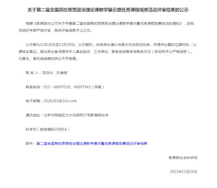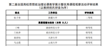 2021年11月26日,教育部网站公示了第二届全国高校思想政治理论课教学展示暨优秀课程观摩活动评审结果。全国高校共计275项入围,其中特等奖33项,一等奖85项,二等奖157项。我校英国365集团公司丁峰老师荣获特等奖。