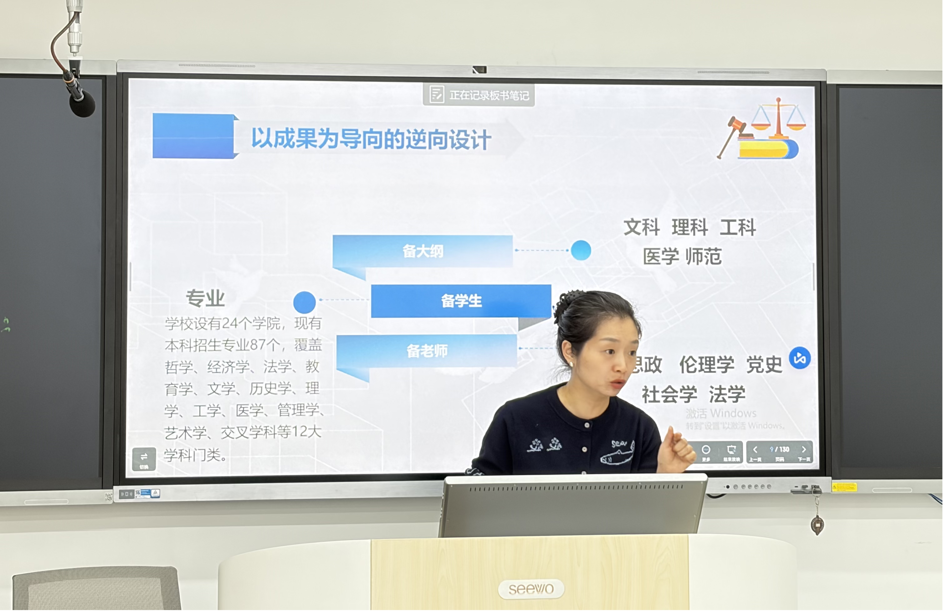 思享会以“高校思想政治理论课教学改革”为核心议题,聚焦课堂提质增效,碰撞教学智慧火花。会上,杨果老师以“‘思想道德与法治’课‘问答式’教学模式研究”为题,从内涵界定、价值意蕴、实践困境及优化路径四个维度,系统阐释了“问答式”教学模式在思政课堂的应用逻辑与实践方案。丁峰老师则立足“基于‘大思政课’+‘OBE理念’的‘思想道德与法治’课教学改革研究”问题,深入剖析“以学生为中心”的教育理念如何贯穿备课设计、课堂实施、课后评课的全流程。