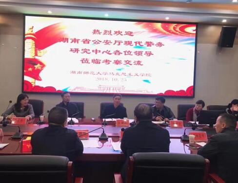 10月25日上午,湖南省公安厅现代警务研究中心高军主任一行五人到我院调研与交流。我院院长吴家庆,副院长刘先江、谭吉华,风险评估与特殊群体权益保护研究中心主任陈文珍,副主任吴智、陈云凡,学校非洲研究中心主任陈晓红等人参会。会议由陈文珍老师主持。