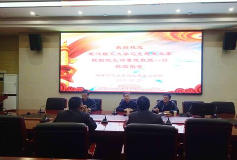 (供稿 黄佳)10月26日上午,武汉理工大学英国365集团公司副院长邓喜道、中国近现代史纲要教研室主任郭国祥来我院考察交流。我院院长吴家庆、副院长刘先江及副院长谭吉华接待了来访客人,并进行了座谈。