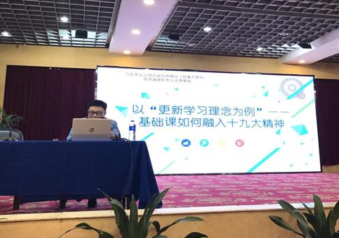 易志成老师以“学习兴趣与学‘习’思想”为导入,展示了《以更新学习理念为例--基础课如何融入十九大精神》的教学成果。他围绕十九大精神和习近平新时代中国特色社会主义思想学习的主题,突出学习理念的交流,学习方式的转变,设计了理念交流、兴趣激发、讨论深入、理论提升等教学环节,分析了思想政治理论课课堂教学的新变化、新问题、新思路;表达了对“融通乐学”教学理想的追求。