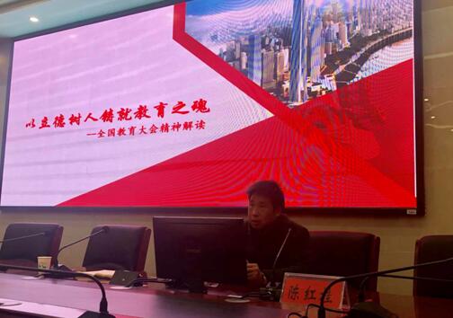 12月13日下午,我院召开教职工大会,宣讲全国教育大会精神。党委书记陈红桂主持大会。