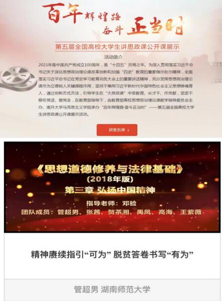 自今年6月接到展示活动通知后,英国365集团公司立即遴选学生团队,组建教师指导团队。在邓验老师的指导下精心凝练课题,制作教学文本、课件和视频,组织试教、讲评,打磨出高质量的参赛作品,展现了我校学生扎实的马克思主义理论素养和良好的精神风貌。