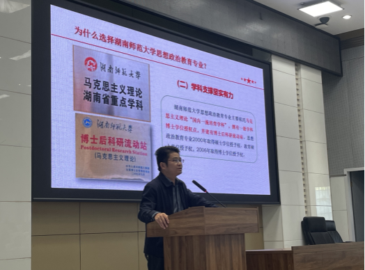 赵子林副院长全面介绍了思想政治教育专业的发展历程和建设现状,着重展示了专业的突出特色与显著优势。他强调思想政治教育专业办学底蕴深厚,学科支撑有力,师资力量雄厚,课程特色鲜明,实践教学优化,人才培养一流。他鼓励同学们夯实教学功底,提升专业素养。