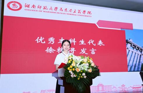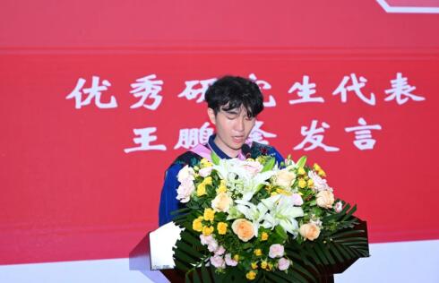 优秀本科生毕业生代表徐梓浔、优秀研究生毕业生代表王鹏烽先后发言。他们结合个人经历、学习感悟,表达了对学院、导师的由衷感谢,争做栋梁、报效祖国的决心。