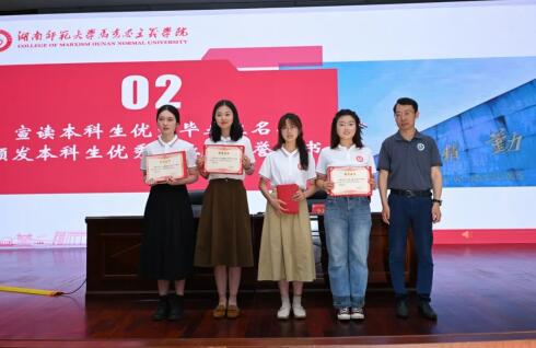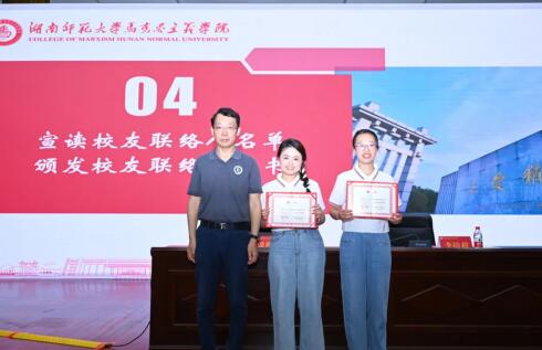 李培超、周俊武分别为优秀本科生毕业生、优秀研究生毕业生、校友联络人颁发荣誉证书、聘书。