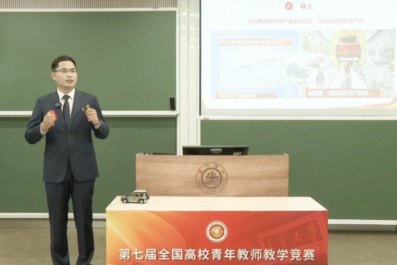 本次竞赛有来自全国31个省区市和新疆生产建设兵团的156名选手同台竞技,邢鹏飞老师凭借深厚的理论功力、扎实的教学功底、先进的教学设计以及特色鲜明的教学风格,主讲课程《习近平新时代中国特色社会主义思想概论》,获得思想政治课专项组一等奖(全国第三名)。这是我校第三次选派青年教师参加全国青教赛,第一次取得全国一等奖的优异成绩,也是湖南省思政课教师在该项赛事的第一个全国一等奖。