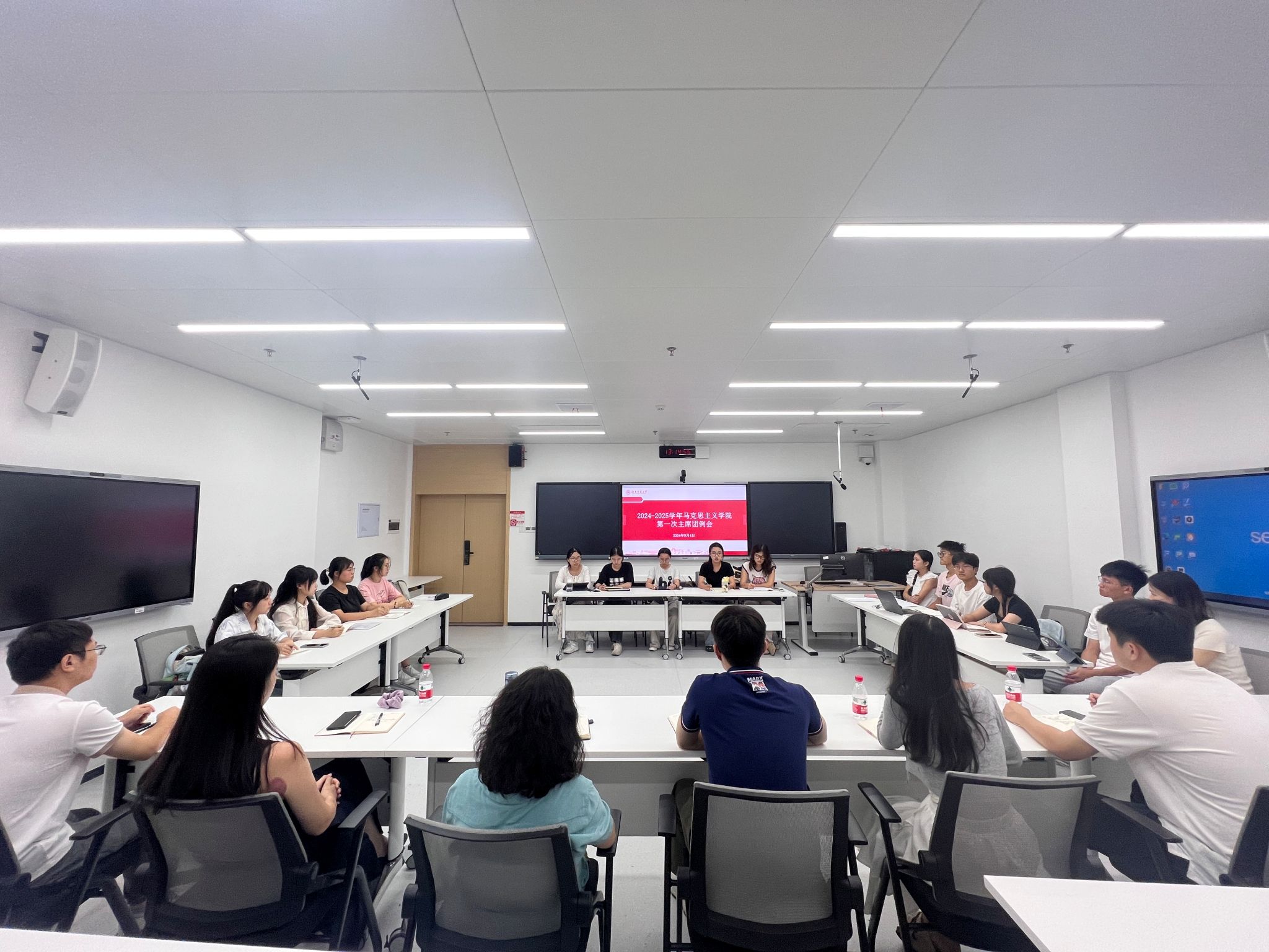 (通讯员 张明阳 杨海祺)为加强学院各学生组织间的沟通与合作,全面部署2024级新生迎新工作,保障新学期学生工作的顺利推进,9月4日,我院召开了2024-2025学年第一次主席团会议。学院副院长李超民、党委副书记林峻、学工办全体辅导员老师及主席团全体成员参与本次会议。学工办主任章杨主持会议。