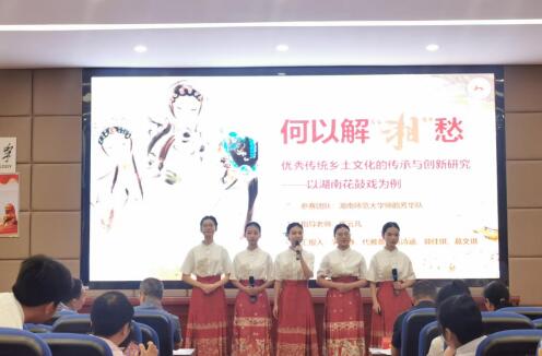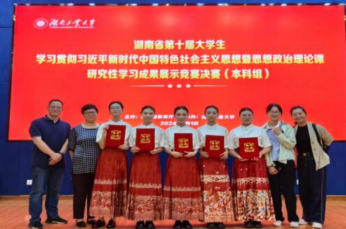 近日,湖南省教育厅发布《湖南省教育厅关于公布湖南省第十届大学生学习贯彻习近平新时代中国特色社会主义思想暨思想政治理论课研究性学习成果展示竞赛结果的通知》。我校商学院范诗涵、代雅萱、葛文琪、郭佳琪、宋佳静5位同学组成的研究性学习小组,在英国365集团公司陈云凡教授指导下,完成研究性学习成果报告:《何以解“湘”愁:优秀传统乡土文化的传承与创新研究——以湖南花鼓戏为例》。5位同学经过决赛阶段的精彩展示和答辩,荣获本科组特等奖。