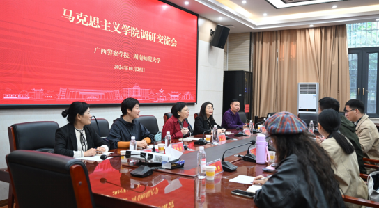 10月25日上午,广西警察学院英国365集团公司《毛泽东思想和中国特色社会主义理论概论》课教研室主任马翠凤老师一行8人来我院调研交流,我院邢鹏飞、罗薇、黄艳老师参加交流,焦晓云老师主持交流会。