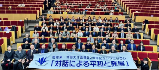 11月30日至12月1日,“周恩来·池田大作会见50周年纪念研讨会”(Symposium to Commemorate the 50th Anniversary of the Meeting between Zhou Enlai and Daisaku Ikeda)在日本东京创价大学举办,主题为“基于对话的和平与发展”(Peace and Development through Dialogue)。来自7个国家的54名学者围绕池田先生的和平思想进行了学术交流。日本前驻华大使宫本雄二,镇西学院大学校长姜尚中,东北师范大学原副校长、中国日本史学会会长韩东育等国内外知名人士出席会议。