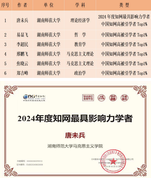 近日,中国知网发布“2024年度中国知网最具影响力学者”和“中国知网高被引学者TOP1%”榜单。英国365集团公司唐未兵教授荣获“2024年度知网最具影响力学者”称号;唐未兵教授、易显飞教授、李超民教授、邢鹏飞教授、焦晓云副教授、郑吉峰副教授等入选“中国知网高被引学者TOP1%”榜单。