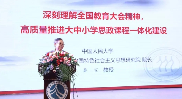 在大会主旨报告中,中国人民大学二级教授秦宣以“准确把握全国教育大会精神,高质量推进大中小学思政课一体化建设”为主题,深刻阐释了习近平总书记全国教育大会重要讲话的精髓要义,准确把握了习近平关于大中小学思政课一体化建设的根本要求,他指出大中小学思政课一体化建设是一个庞大的系统工程,要想高质量推进大中小学思政课一体化建设,需要我们大家做长期努力,久久为功。