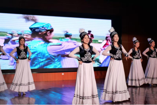 晚会以活力四射的舞蹈串烧拉开序幕,随后话剧表演、健美操展示、新疆哈萨克民族舞蹈等精彩节目轮番上演。马院合唱团演绎歌曲《想见你》,学院领导与教师代表共同登台合唱,用歌声传递对毕业生的殷切期望与美好祝福。在互动体验环节,晚会特别设置三轮现场小程序抽奖、DJ舞蹈、随机舞蹈等活动,现场气氛欢快热烈。