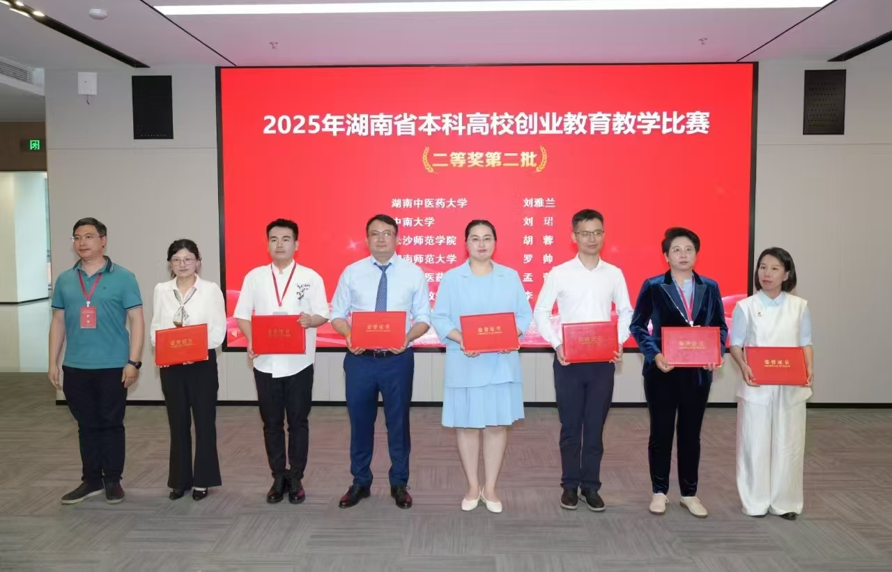 5月30日圆满落幕的2025年湖南省本科高校创业教育教学比赛中,我院参赛教师罗帅凭借扎实的教学功底和创新的教学设计,荣获本次大赛二等奖。本次大赛由湖南省教育厅主办,湖南农业大学承办。经过校级初赛、省级初评、现场决赛的严格选拔,最终评选出一等奖12名、二等奖21名。