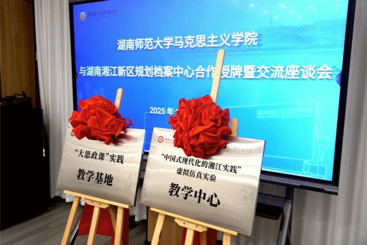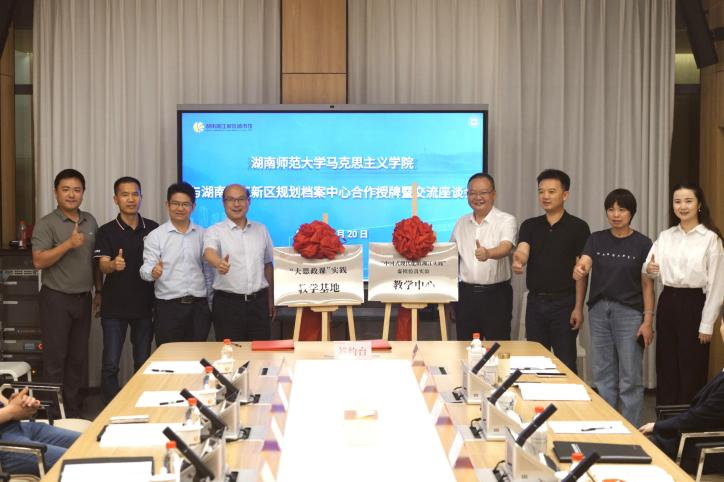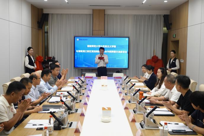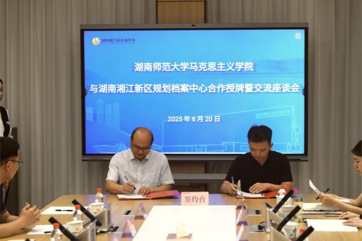 2025年6月20日下午,我院与湖南湘江新区规划档案中心合作授牌暨交流座谈会在湖南湘江新区城市馆会议室举行。湘江新区自然资源和规划局机关党委副书记、四级调研员张志伶,湘江新区规划档案中心主任、城市馆馆长王刚,湖南湘江早报文化传媒有限公司副总编辑兼副总经理余纯,湘江新区规划档案中心综合管理部(讲解接待部)部长李婕及部分讲解员参加会议,我院党委书记李泳波、副院长赵子林、副院长汤小红、党委副书记易珊及各系主任各办主任出席会议。
