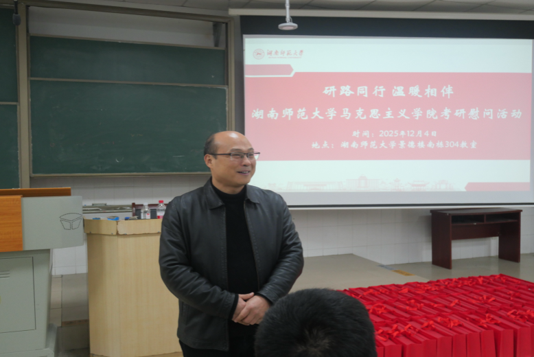 (通讯员 蒲鑫睿 何莉莉)为鼓舞考研士气,提升考研学子的备考信心,营造和谐温暖的学院氛围,12月4日上午,我院于景德楼304开展2026届考研学子慰问活动。院党委书记李泳波、副院长汤小红、党委副书记易珊、教授蒋国海、思政系主任杨果、学工办主任章杨、团委书记吴炫达共同参加此次活动。
