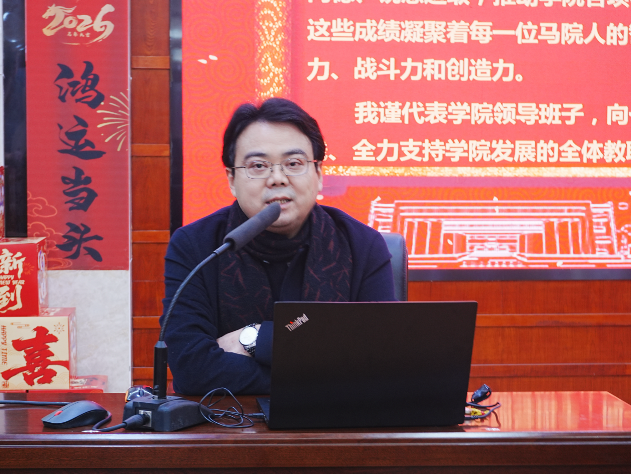 会议伊始,院长易显飞作2025年度工作总结报告,他全面回顾了过去一年学院在党建引领、科研创新、教学改革、人才培养、社会服务及学院创收等领域的显著成效,也客观剖析了当前在学科建设、科研成果产出、人才队伍及学院班子建设等方面制约学院高质量发展的短板与不足,并对学院下一步的核心工作和重点推进举措进行了系统展望与周密部署,为新一年的发展指明了方向。