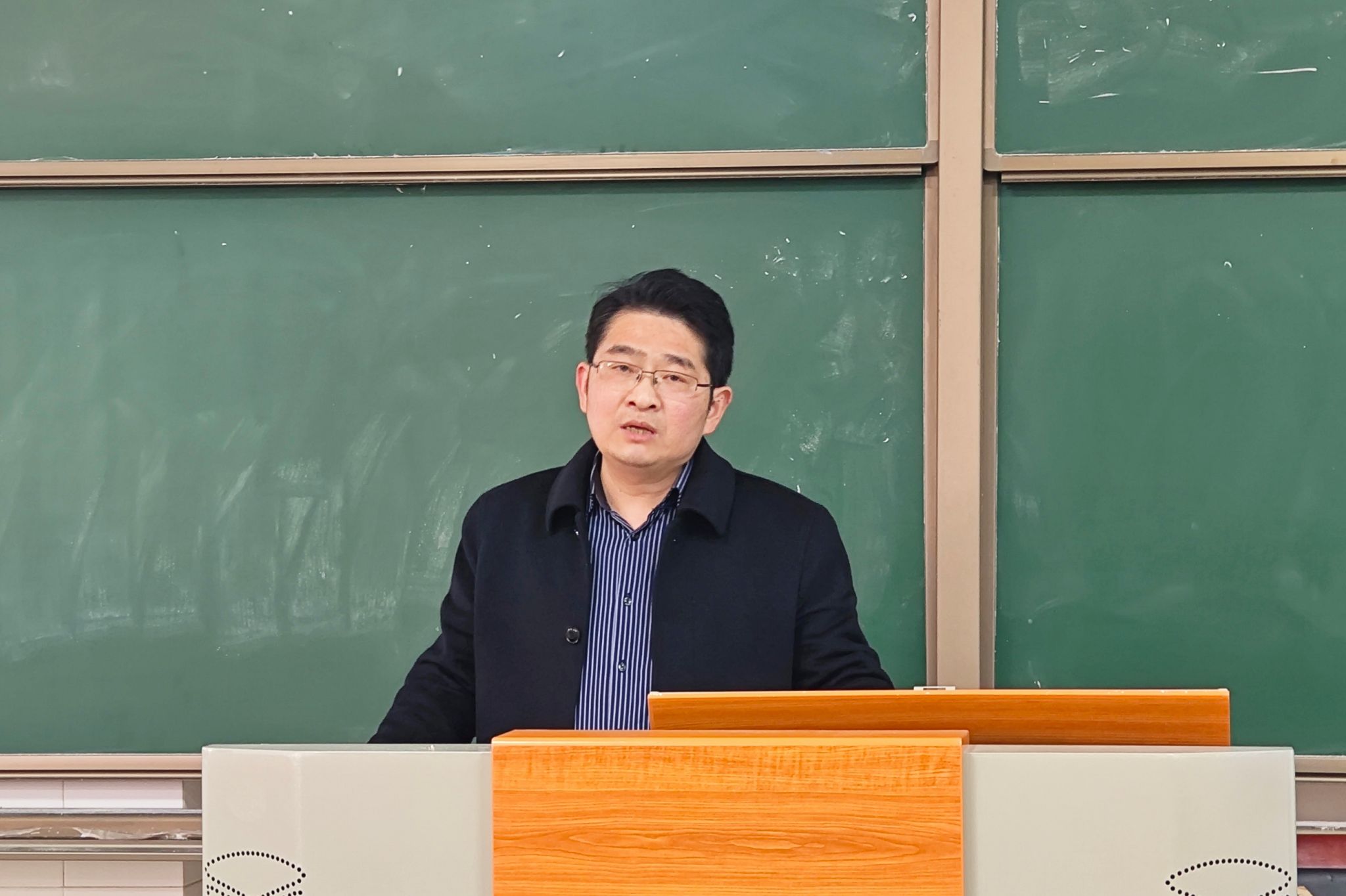 赵子林副院长作实习动员。从教育实习课程的重要性出发,结合思政教育专业优良传统和往届实习经验,从明确教学目标、端正实习态度、加强协作互动、遵守纪律安全四个方面,对实习生进行谆谆教诲。