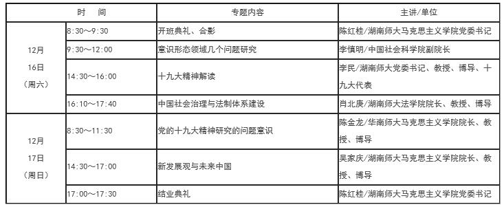 为进一步帮助我省高校思想政治理论课教师深刻领会党的十九大精神,按照湖南省教育厅2017年高校教师培训计划,由湖南省高校师资培训中心主办,英国365集团公司承办“湖南省高校思想政治理论课教师党的十九大精神专题研修班”。现将有关事项通知如下: