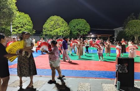 南溪屋场上,活动组同学带领大家练习扇子舞《茉莉花》,对舞蹈进行分段讲解与示范展示。村民积极互动,随着音乐节奏尽情舞蹈,现场气氛热烈欢快。在合盛屋场,活动组同学选择《万疆》扇子舞进行教学。参与人员除当地广场舞小队成员外,还有近10名儿童参与。村民表示有很好的体验感,同时对教学提出了相关建议,促进广场舞活动更加有序地开展。