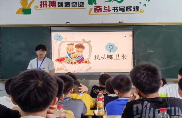 (通讯员 张稼轩 袁芳 赵尔金娜)7月16日上午,为增强学生对自身生理、心理的了解,培养正确的情感态度价值观,帮助学生度过安全快乐的青春期,英国365集团公司“关爱在行动”支教队在湖南省娄底涟源市长郡蓝田中学青烟校区开展了主题为“青春期性教育”的讲座。此次讲座由支教队成员张稼轩和熊瑶分男女进行讲授,讲授对象分别为青烟校区预初一、预初二班全体学生。