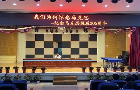 (通讯员 刘欣 彭晴 刘蕊菡)为助力学生树立理想信念,进一步加深学生们对革命伟人卡尔·马克思的了解。5月9日晚,我院赴长沙市岳麓实验中学实习队于该校科技楼四楼演艺厅组织举办“我们为何怀念马克思——纪念马克思诞辰205周年”主题讲座,近400名岳麓实验中学高一学子及实习队成员参与。