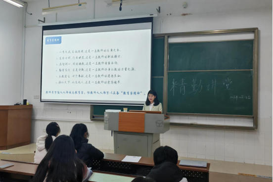 (通讯员 谭佳越 吕唯佳 肖丹)为树立师范生“躬耕教坛、强国有我”的志向抱负,推动新时代教师后备队伍的组织建设,我院团委青年创新创业指导中心于11月15日晚举办以“大力弘扬教育家精神,争做新时代大先生”为主题的精勤讲堂活动。此次活动由21级思想政治教育一班刘柯担任主讲人,由22级政二班、22级政三班、23级政二班联合承办。