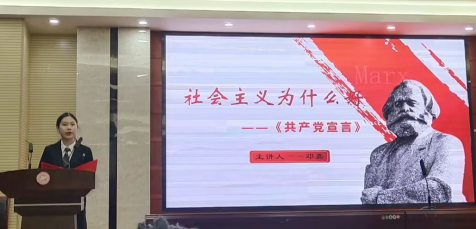 活动伊始,主持人介绍了此次红色论坛的主题及现实意义,全体成员共唱共青团团歌。随后,欧阳帆、刘芊芊、邓嘉、庄依诺、秦佳期五位主讲人结合自身阅读《共产党宣言》的心得体会,回答了“社会主义为什么好”这一问题。同时,各小组成员还进行了情景剧、说唱、朗诵等多种形式的特色表演。活动最后,李风华教授对此次红色论坛活动进行点评总结,充分肯定了同学们的研读成果,提出了结合历史研究进行研读的阅读新路径,鼓励同学们将读原著、学原文、悟原理当成终身的事情一直坚持下去,感受人类解放事业的伟大意义。