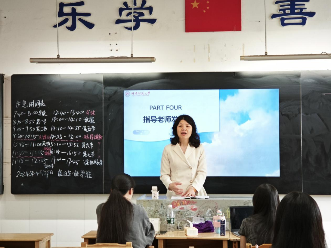 伍屏芝对实习队的教学工作和班主任工作表示肯定,并对长铁一中支持我院实习工作表达了感谢。同时,她对队员们分享的方法和经验进行总结与拓展。她表示,教学无止境,班级管理也无止境,希望实习队员们在接下来的实习中,对自己教育教学以及班主任工作提出更高的要求,让自身在各方面得到成长,成为教育的有心人。