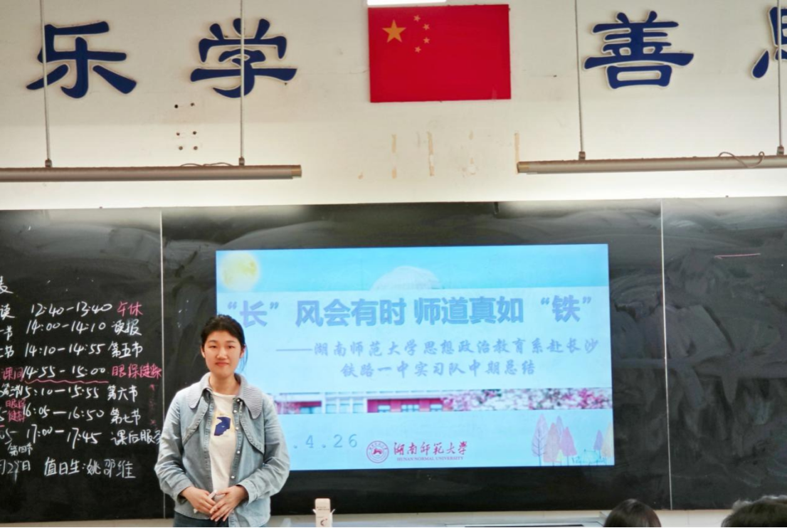 (通讯员 李俊凤 黄瑄 姜文婷)4月26日上午,我院思政系赴长沙铁路第一中学实习队在双翼楼403教室举行中期总结会议。学院指导老师伍屏芝和实习队全体成员参加此次会议。