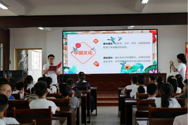 (通讯员 李湘 任泓伽 姜文婷)7月19日上午,英国365集团公司赴湖南省常德市桃源县陬市镇暑期社会实践团(以下简称“实践团”)于陬市小学五楼报告厅开展以“觉醒传统之魂,筑牢自信之基”为主题的第四期红色论坛系列活动。实践团成员陈晗主讲,陬市小学暑期夏令营学生及实践团成员全体参与。