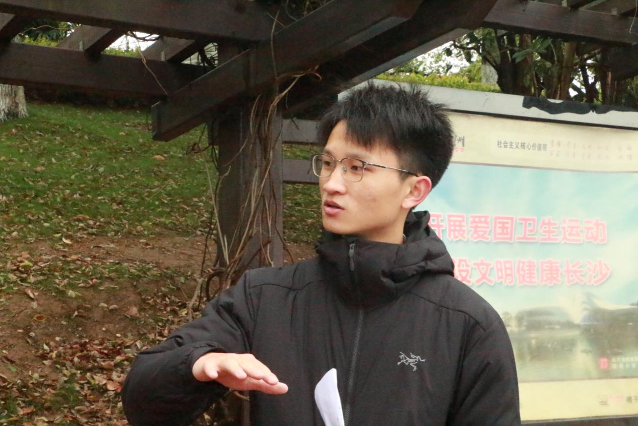 在橘子洲入口处,吴涵同学以毛泽东同志青年时期的诗作《七绝·改西乡隆盛诗赠父亲》开篇。他重点解读“孩儿立志出乡关,学不成名誓不还”的坚定决心,认为这首诗展现了毛泽东同志早年的远大抱负,并结合视频,回顾了毛泽东的革命历程。杨曦宇同学结合自己的实践经历,呼吁青年一代应树立正确的人生理想,将个人奋斗与国家命运紧密结合。