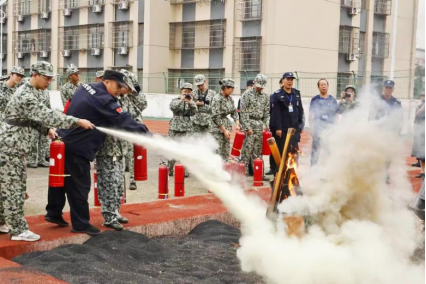 在消防演练环节,新生在教官的指引下,依次进入模拟浓烟环境的黑暗帐篷,以六人为一小组,严格实践“低姿扶墙”的逃生方法,切实体验在能见度低、情况紧急下的火场疏散流程。灭火实操环节,教官现场演示了干粉灭火器的“提、拔、握、压”四步使用法则,并重点强调了操作距离与风向判断等安全要点。在场新生分批次上前,面对模拟火源,规范使用灭火器进行扑救,迅速控制火势。