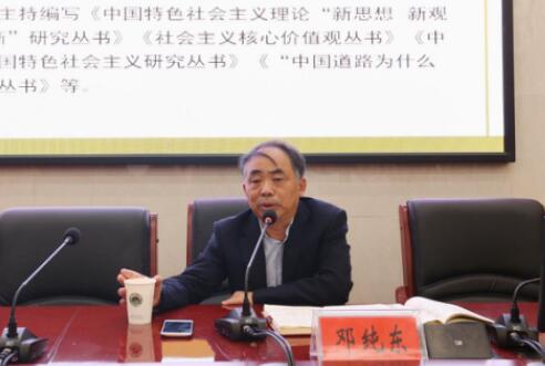 邓纯东教授主要论述了四个问题:一是国家治理体系的本质特征及其基本要求,二是国家治理体系的内容及涵义,三是制度建设的性质和特点,四是治理能力现代化。