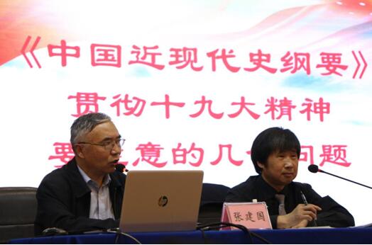 (通讯员 卢花)4月26日下午,教育部思想政治理论课教学指导委员会委员、云南民族大学英国365集团公司张建国教授应邀来我院解读了《中国近现代史纲要》贯彻十九大精神需要注意的几个问题。