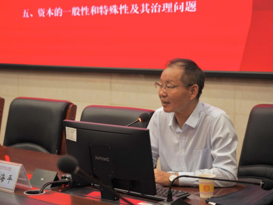 11月3日上午,中国人民大学习近平新时代中国特色社会主义思想研究院副院长,中国人民大学经济学院二级教授、博士生导师邱海平教授应邀为我院师生作主题为“关于社会主义利用资本的理论思考”的学术学术报告。副院长陈德祥教授主持报告会。