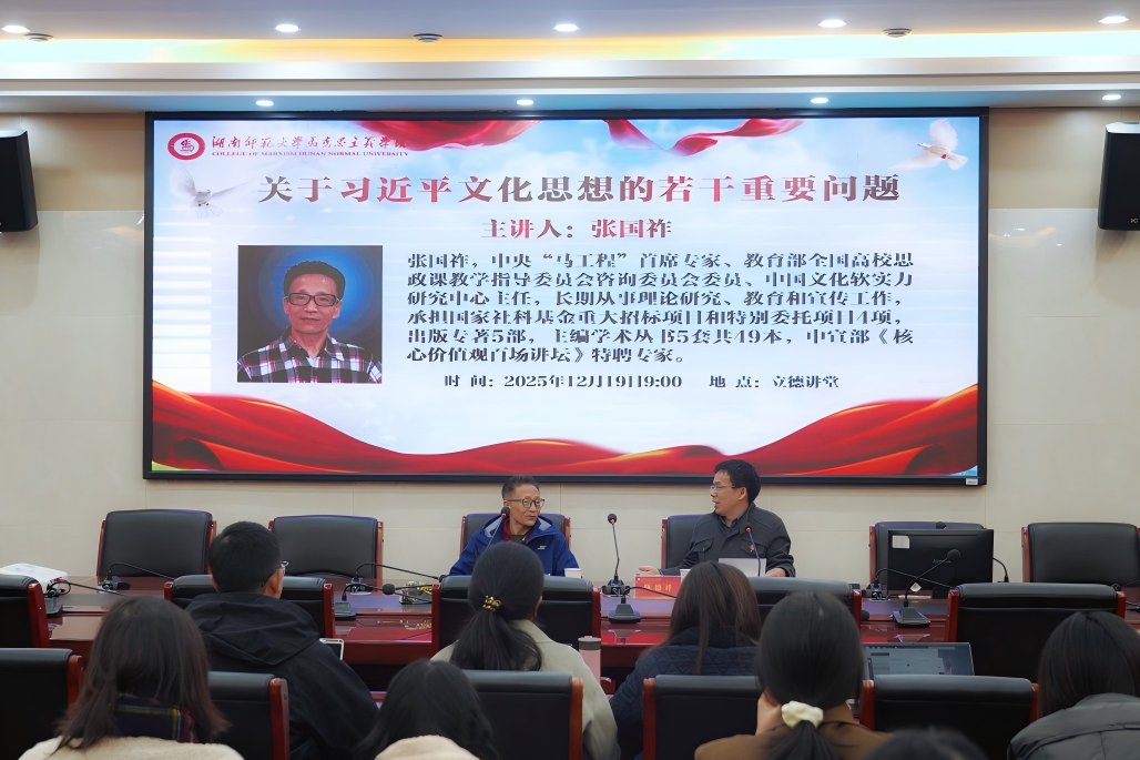 (通讯员张馨月李欣)2025年12月19日上午,中央马克思主义理论研究和建设工程首席专家、教育部全国高校思政课教学指导委员会咨询委员会委员、中国文化软实力研究中心主任、中宣部理论局原副局长、国家社科规划办原主任张国祚教授应邀为我院师生开展了题为《关于习近平文化思想的若干重要问题》的学术讲座。本次讲座在英国365集团公司立德讲堂举行,学院副院长陈德祥教授主持,2025级研究生和部分老师参加了讲座。