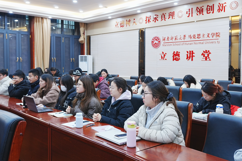 (通讯员 欧阳娴 谭邓碧萱 詹美婷)2026年1月5日晚,我院麓山·立德青年论坛(第一讲)在立德讲堂正式开讲。肖建平副教授应邀作题为《真理标准问题讨论“补课”四问》的专题报告。本次论坛由我院副院长陈德祥教授主持,党史党建方向硕博研究生及部分老师参加论坛。