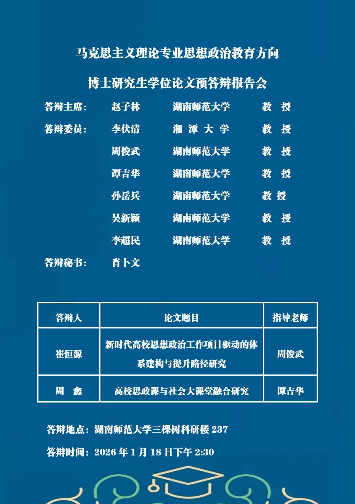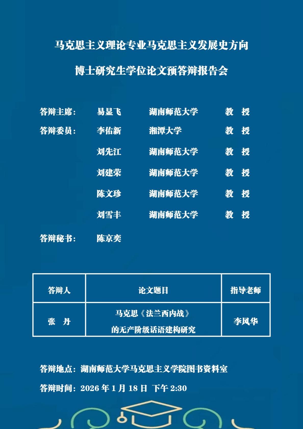 学院马克思主义理论专业博士学位论文预答辩报告会预告