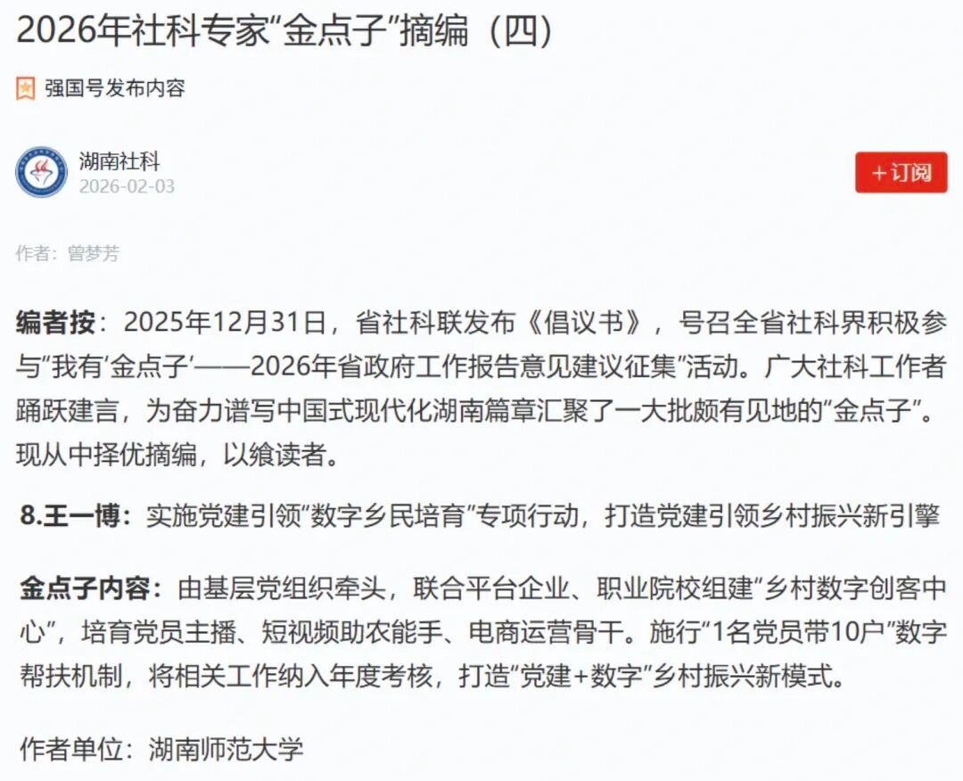 近日,在湖南省社科联组织的“我有‘金点子’——2026年省政府工作报告意见建议征集”活动中,我院宁国良老师团队、胡馨月老师提交的三条建议从众多建言中脱颖而出,被正式采纳,并已通过“湖南社科”微信公众号及“学习强国”平台公开发布,充分彰显了我院在服务地方发展战略中的重要贡献。