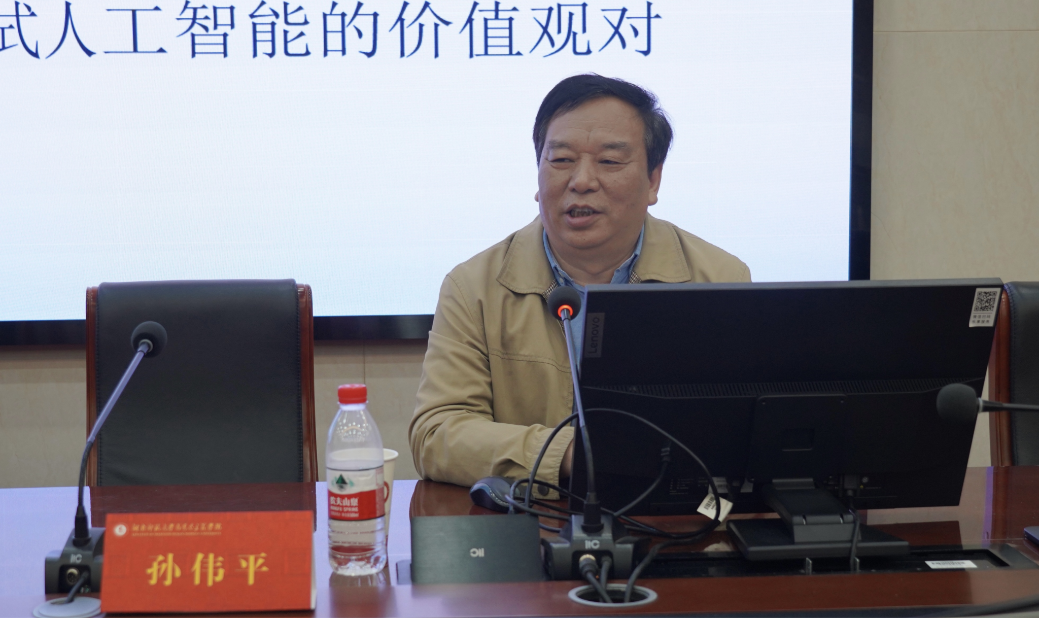 我院院长易显飞教授首先对孙伟平教授的报告表达衷心感谢,他表示这次讲座将马克思主义理论与人工智能前沿议题深度融合,既体现了深厚的哲学功底,又展现了强烈的现实关怀,是一场思想深刻、启发性强的学术盛宴。他号召在座师生紧跟学术前沿,拓展跨学科视野,不断夯实专业基础,提升理论联系实际的研究能力。