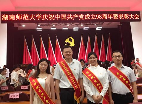 7月1日下午,学校召开“庆祝中国共产党成立98周年暨表彰大会”,表彰2017-2019年度先进基层党组织、优秀共产党员和党务工作示范岗。我院吴新颖教授荣获“湖南省高校教师党支部书记双带头人标兵”称号;党史党建系支部被评为“优秀基层党支部”,支部书记王孟老师被授予“党务工作示范岗”;教师戴晓慧和硕士研究生陈乡荣获“优秀共产党员”称号。