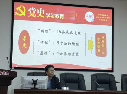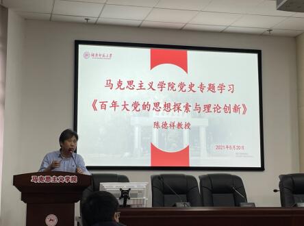 5月20日下午,院党委组织全院师生进行中共党史专题学习教育。陈德祥教授以《百年大党的思想探索与理论创新》为题作专题辅导,党委书记陈红桂主持专题学习