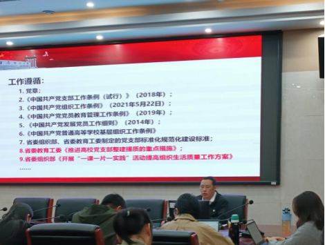 (通讯员 常晓茹 罗谦慧)11月25日下午,我院在立德讲堂召开党建工作标杆院系建设暨党支部整建提质推进会议。院党委书记陈红桂出席会议并讲话,校党委组织部组织科科长陈文东应邀作辅导报告。院党委委员、专职组织员王绍平主持会议。