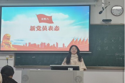 会议即将结束时,三位新发展党员依次表态发言,表达了入党后的努力方向和向优秀党员学习的决心。邹继伟表示,希望支部各位新发展党员不忘入党初心,坚持砥砺前行,迎难而上,发扬党员的先锋模范作用,不断提高自己的党性修养,为支部的建设贡献自己的力量。
