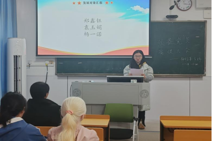 (通讯员 胡艳芳 宁子康 孙乐)11月28日中午,我院本科生第一党支部于景德楼中栋111教室召开预备党员接收大会。支部第一书记邹继伟、支部党员(含预备党员)参与此次会议。会议由支部书记周曼琳主持。