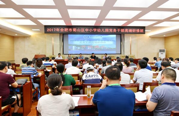 (供稿 行政办)7月23日上午,由我院承办的2017年合肥市蜀山区中小学幼儿园党务干部高端研修班举行开班典礼。学院党委书记陈红桂、副院长汤小红,合肥市蜀山区教育体育局组织人事科科长赵成瑜、我校继续教育学院培训科科长张雪梅出席开班典礼。开班典礼由继续教育学院培训科科长张雪梅主持。