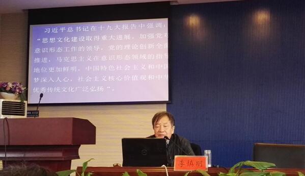 李民书记以《学习“十九大”精神,做好高校思想政治工作》为题,结合中组部、中宣部和教育部刚刚召开的“加强和改进高校思想政治工作座谈会”的最新精神,提出要充分利用“十九大”精神中的思想政治理论课教学素材,“做实”党的十九大精神“三进”工作,培养能担当民族复兴大任的时代新人。他根据自己的调研和思考对思想政治理论课怎么讲、思想政治理论课教师怎么当等问题进行了详细阐释。